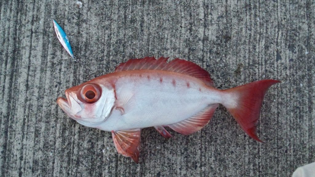 引きはそこまでではないのだが結構重く、ロッドを立ててもなかなか浮いてこない、手応え的には少なくとも40センチ以上のハタかフエダイあたりか?