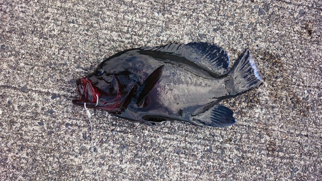 クロハタ なおその魚だが・・・うーん、アタマというか口周りはどうにもハタ類のそれなのだが、体は側偏していて腰回りはフエダイの類っぽく、しかし尻尾はなんだかベラっぽい・・・なんだオマエはw