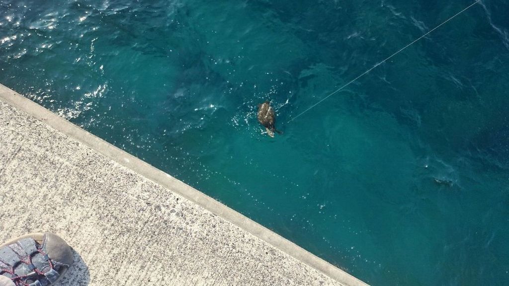 アオウミガメ 浮いてきたのは、案の定のウミガメ君だった・・・。orz