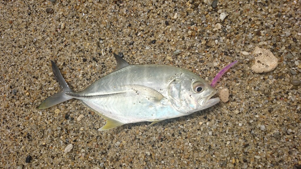 とりあえずしばらくジグを投げてみる・・・と、数投目に何かがヒット、大きくはないが割と引くなーと思っていたらフエフキダイだった。30センチくらいか、まあコイツあんまり旨くないしリリースだな・・・と思ったら。