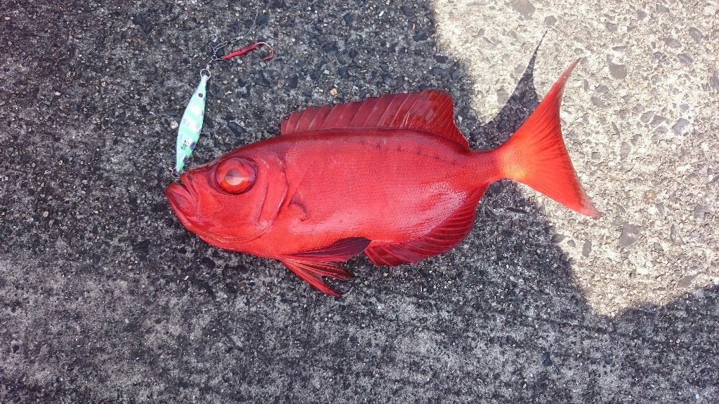 上がってきた魚はヘイケ(ホウセキキントキ)だった・・・たまにギラっと見えるのはコイツらだったらしい。まあ、そんなに頑張って釣るほどでもないなー、と思いつつもう数投だけしてみるがアタリ無し。