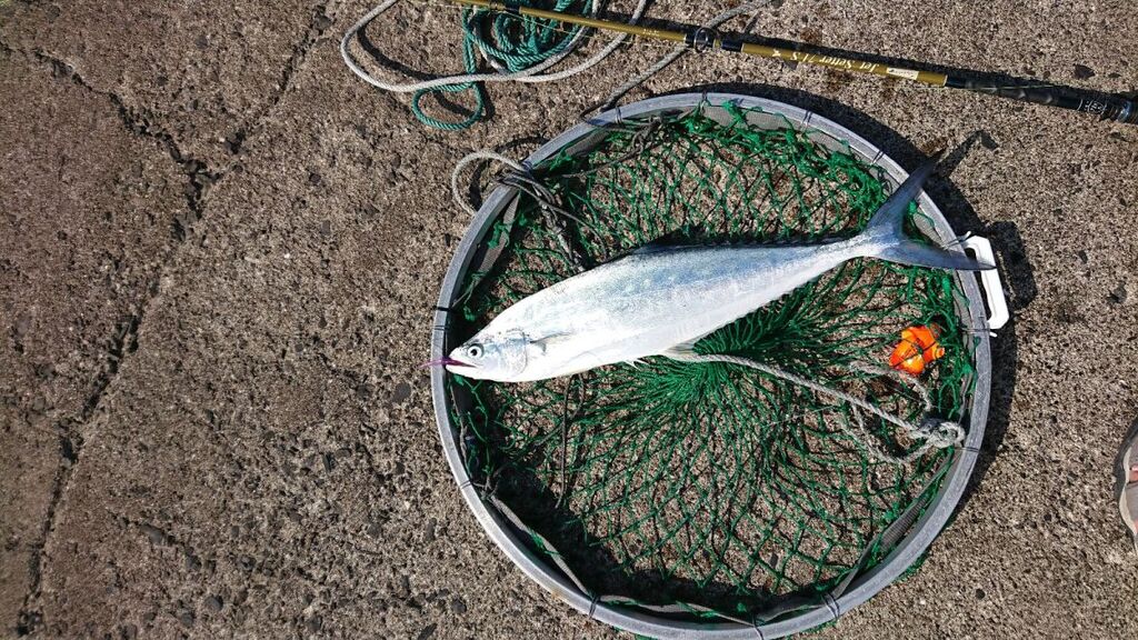 なんだか軽いわ水面で暴れるわで、最初はダツかと思ったが、寄せてくると魚の形をしている・・・あー、イケカツオだったか!上げてみると、60センチ近くあるのに妙に軽く、細長い上に薄っぺらい・・・かなりの軽量設計だな、これカーボンフレームっすかね?w