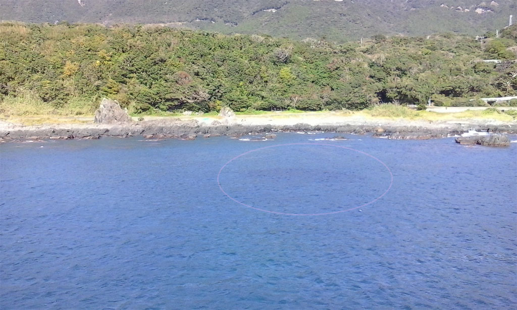 晴れていて日が高くなったので、今度はメアジの群れを目視できる・・・が、少し遠い。