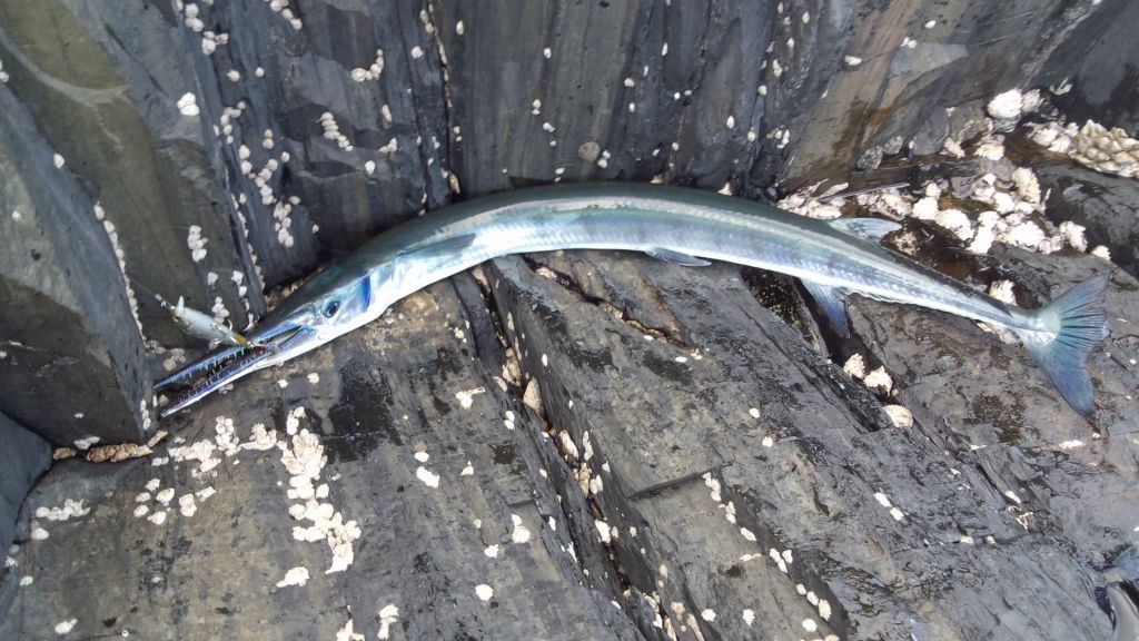 やっと釣れた魚待初の魚はダツですよ、ああもうマトモな魚はどこ行っちゃったんだよ・・・。