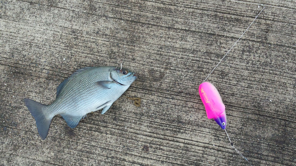 屋久島で「シツオ」と呼ばれるイスズミ、オキアミを使う釣りでは雑魚の代名詞みたいなもので、引きはいいのだが臭くて食えたもんじゃないため、ほとんど誰にも相手にされていない。