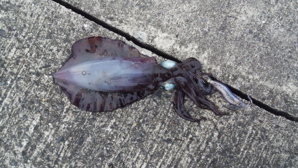 アオリイカ ほいさー、と抜き上げ、うっかりイカGET!