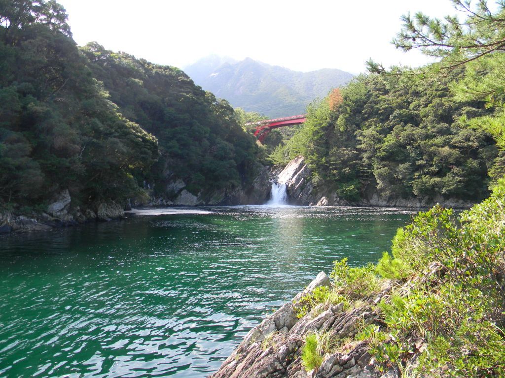 その後「ぽんたん館」に車を停めて、ヨメさんは水着一式、私は竿を抱えて「トローキの滝」展望台へ。