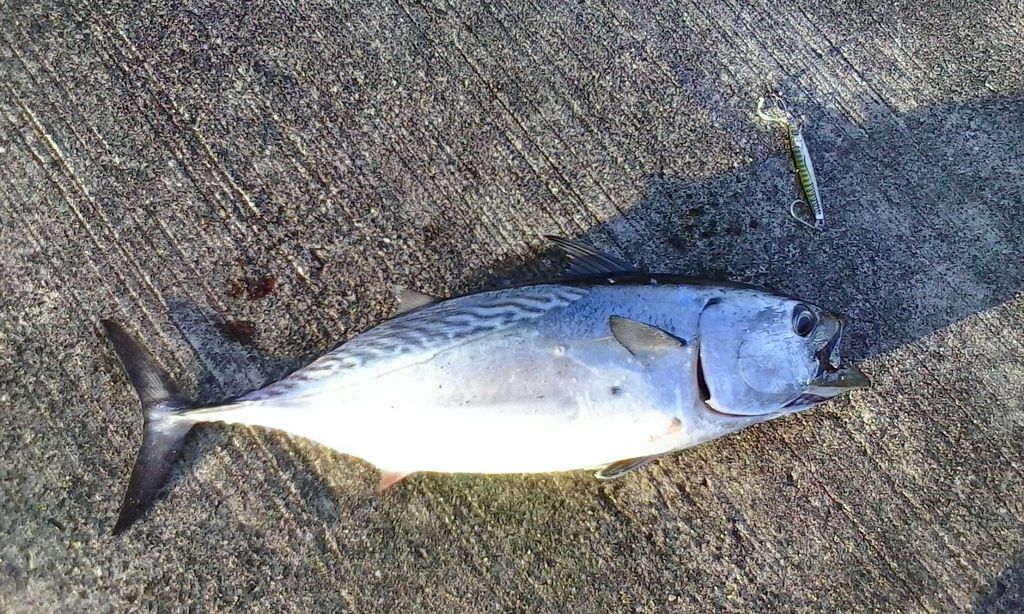まあしかし、いつぞやのツムブリのような暴力的な引きではない、左右によく走るがそんなにトルクは無い、こりゃあスマ(オボソ)の40センチくらいかなー?
