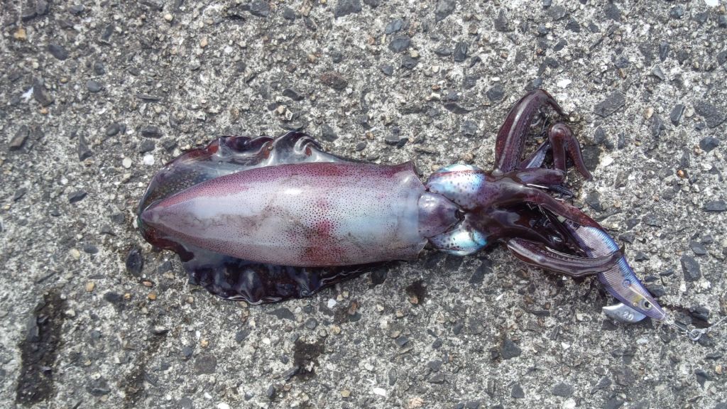 大きくはないがあっさりイカGET! ノルマ達成まであと8匹!