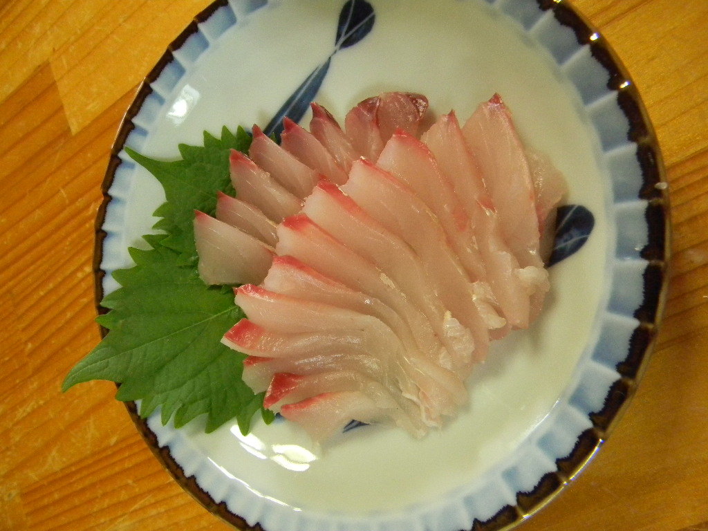 スマの刺身は絶品で、アラは酒蒸しでこれまた美味い。