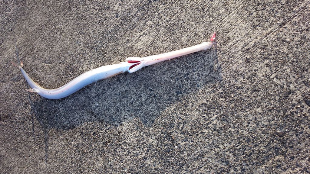 7時になってミノーを3投だけして帰ろうと思ったら、巻き終わり近くでダツが掛かってしまった、迷惑な・・・。