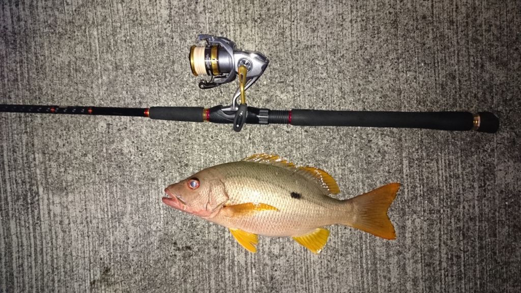 まあフエダイ(43センチだった)に小さいながらもイカが2匹付けば、朝の散歩としては上出来だろう。
