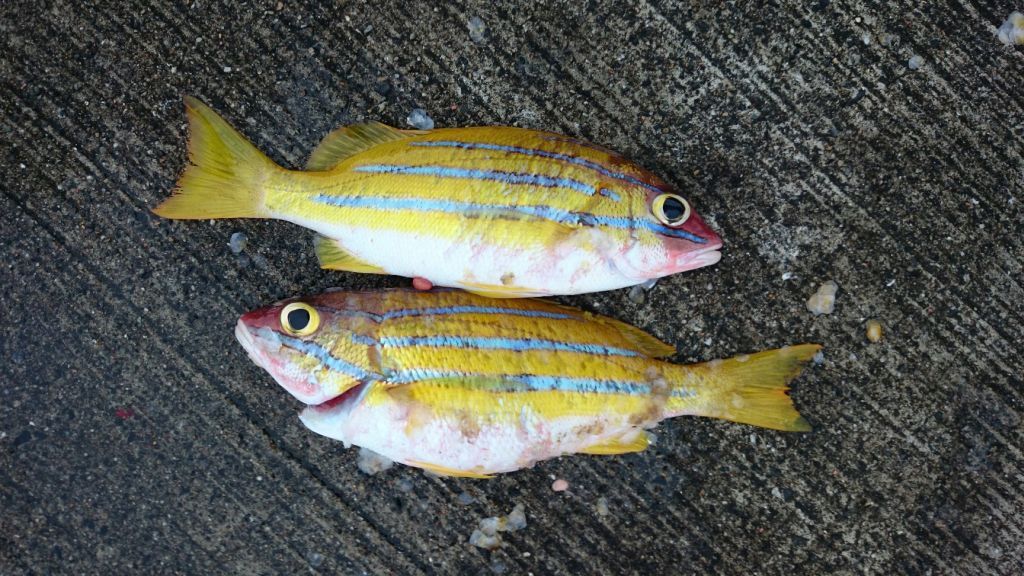 やがてエサも無くなり、針を飲み込んでしまったヨスジフエダイ君2匹を処理し、転進。台風が接近しているのに加え、もし雨が降ったらもう台風が過ぎるまで来れないかなと考え、落としダモも撤収。