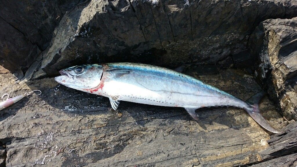 ニジョウサバ 反射的にフッキングを入れたら走り出した、がしかし大して大きくはなさそうである、しかも距離が近いし表層だったのですぐに魚が見えた、青物のようだが・・・んん?