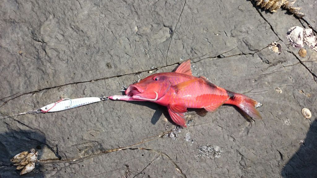 ここ、どうやら沖合60~70メートルに網かロープかが引っ掛かって沈んでいるらしく、海が荒れた後はそれが浮き上がるようで、稀に中層で根掛かりするんだよ・・・ぐーっと少し寄ってくるんだが、一定以上は寄って来ないという嫌な掛かり方で、底の岩に掛かったのと違って絶対に外れない。